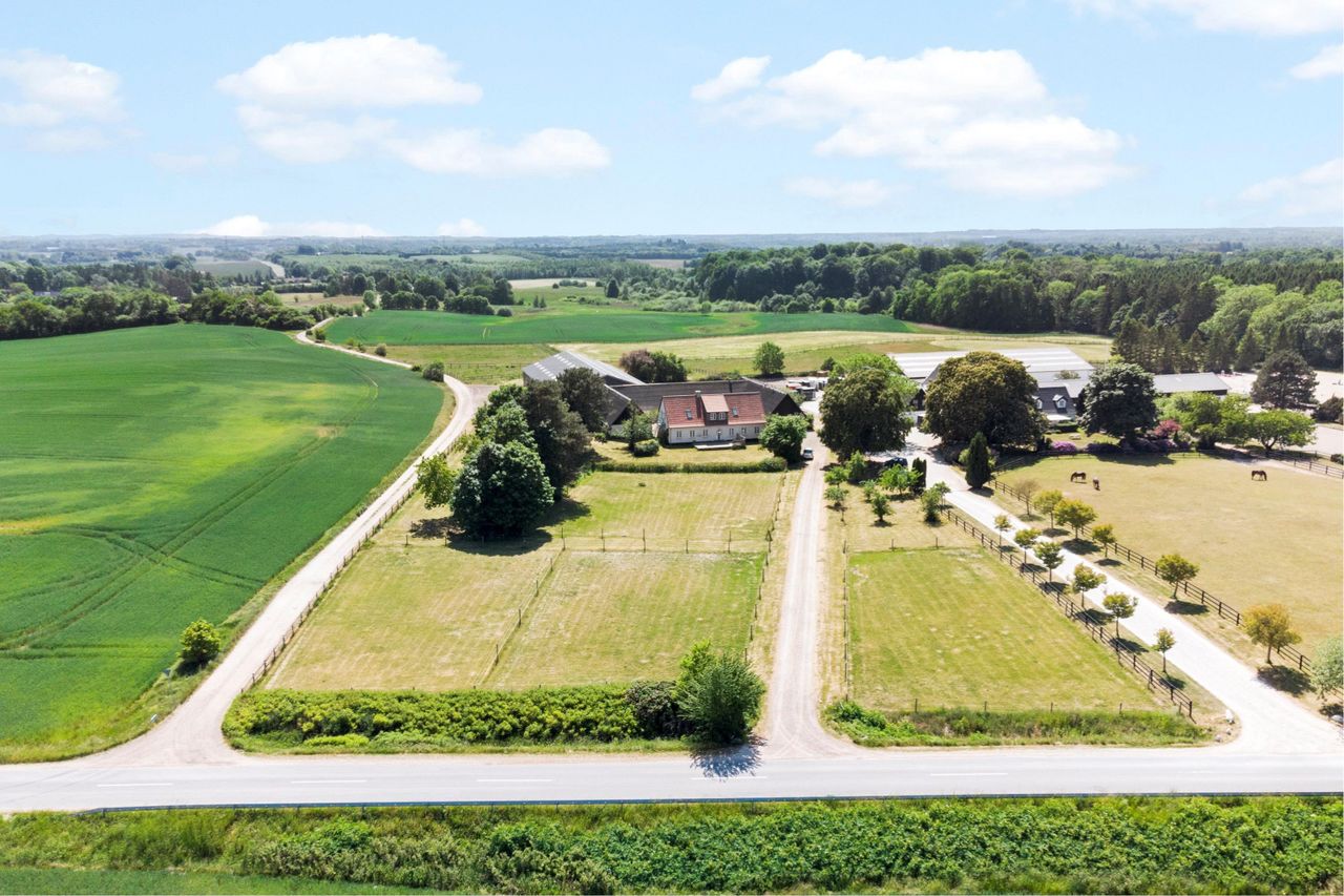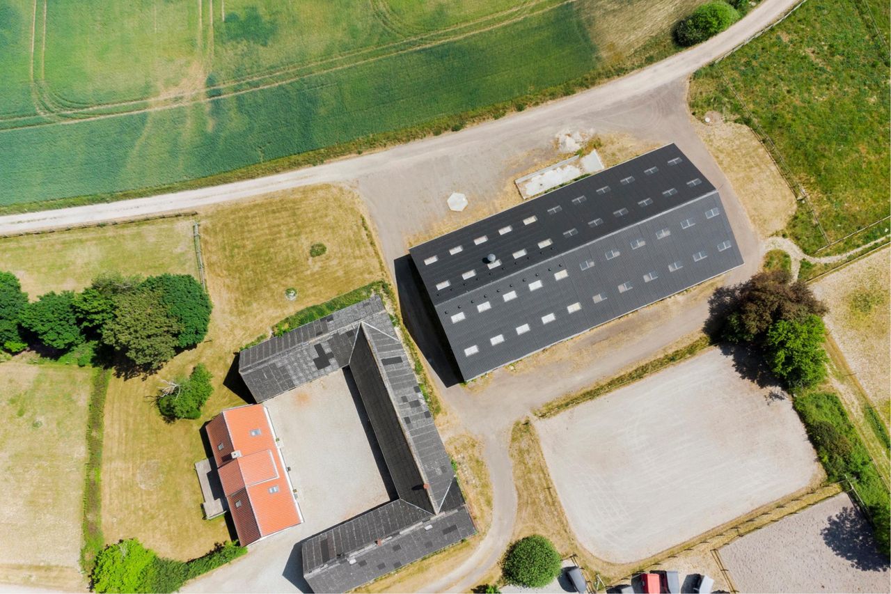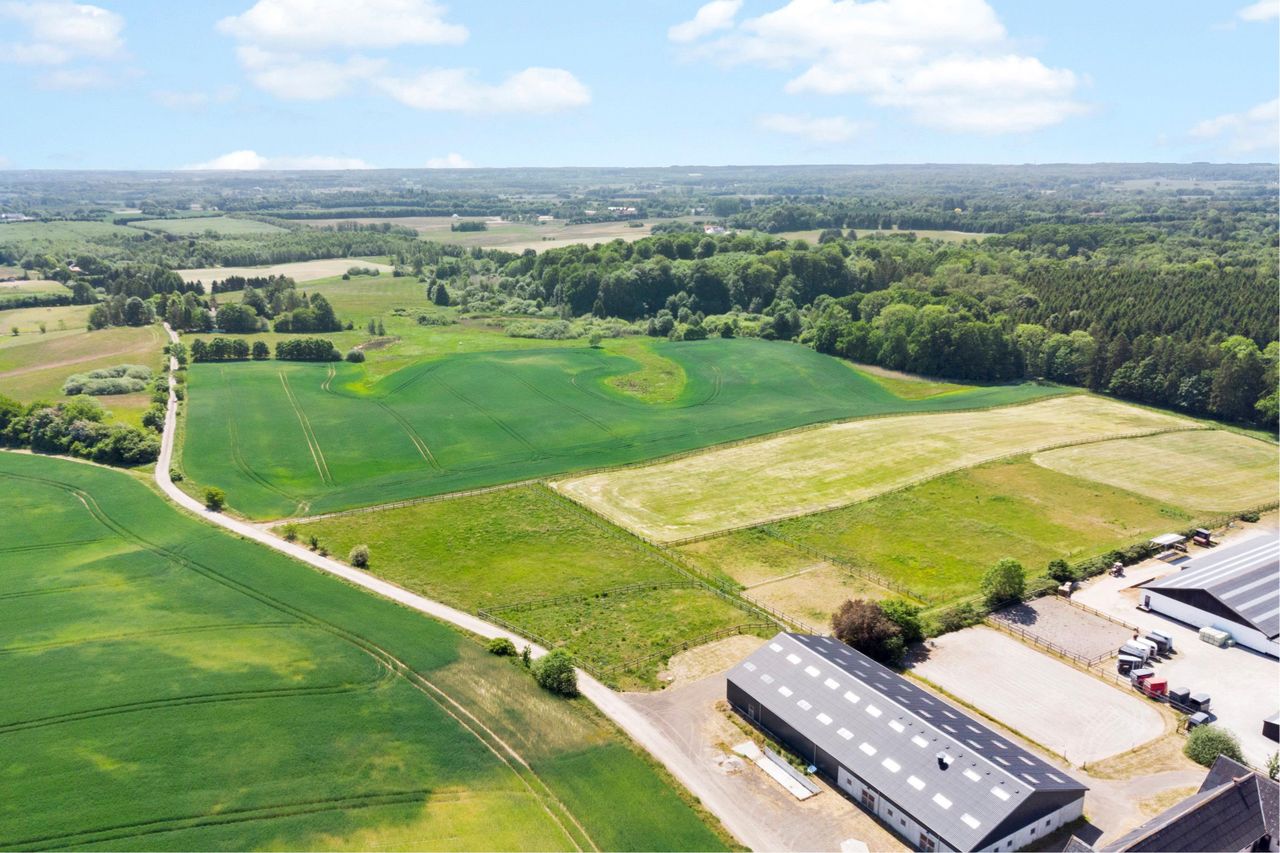 Ydermere flot halbygning fra 2016 i dag indeholdende ridehal og en flot stald på i alt 1007 m2.