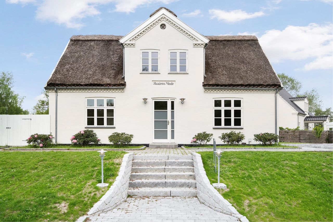 Stråtækt og moderniseret villa i det idylliske gamle Sørup ved havnen og Esrum Sø.