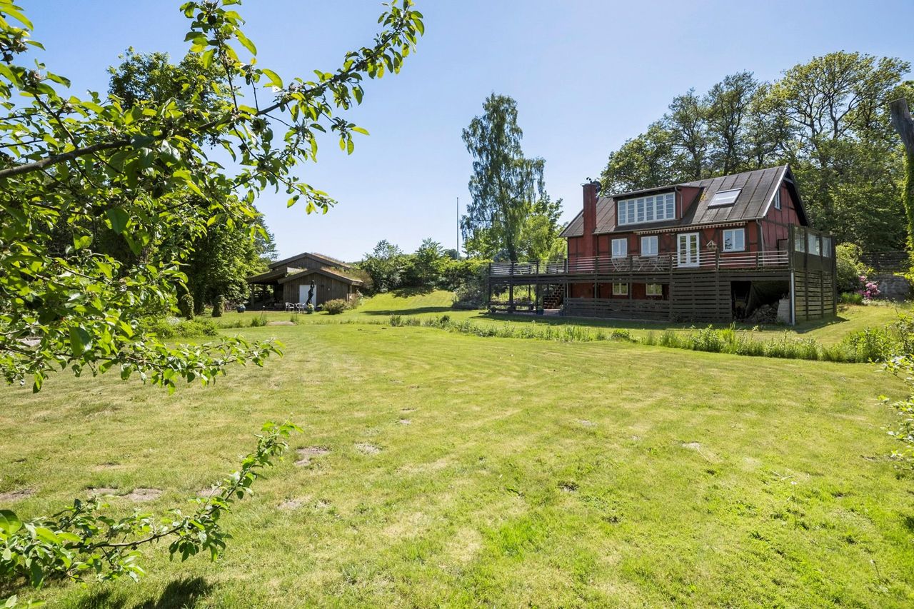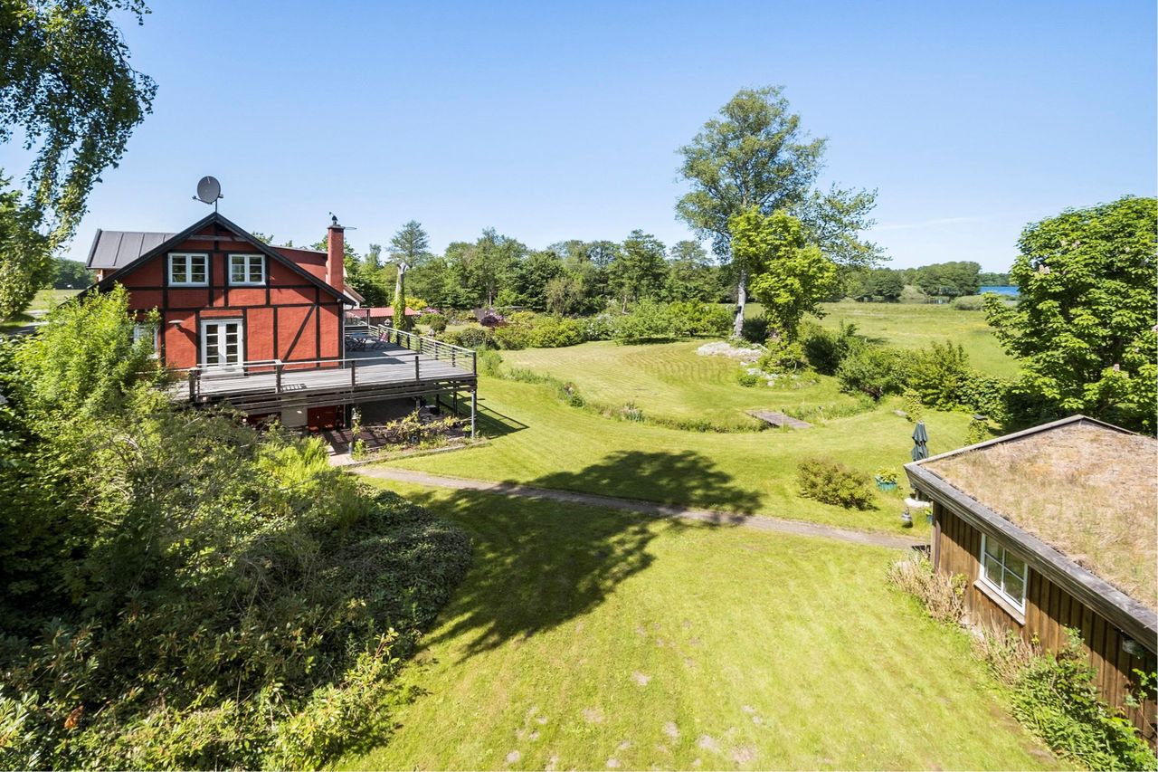 Omgivet af en unik og eventyrlig have på 2.262 m2 med den bugtende å, smuk beplantning og den