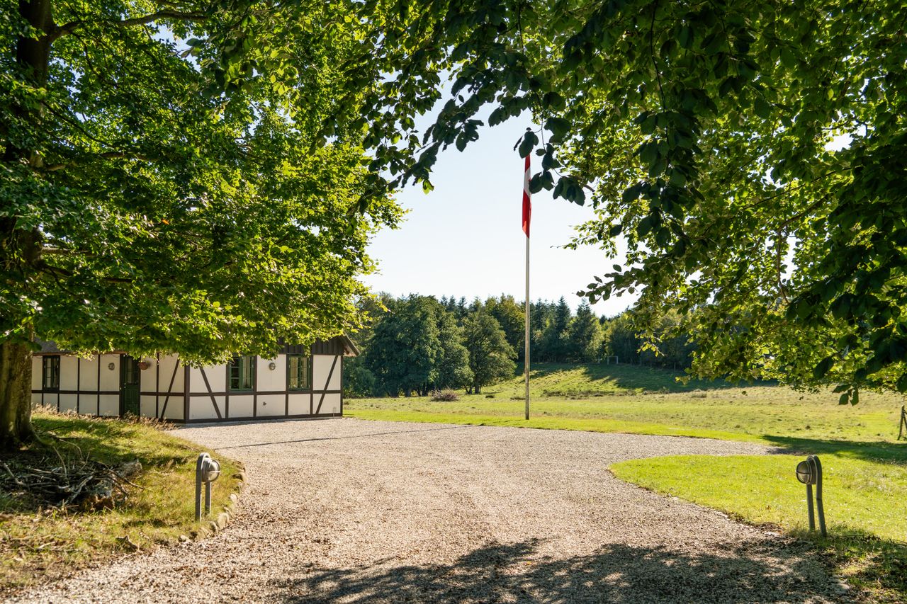 Stilheden og ugenertheden er slående i de maleriske omgivelser. Dertil helt privat og omgivet af et sammenhængende jordtilliggende på lidt under 19 hektar. En sand biotop hvor også vildt- og fuglelivet er særdeles udtalt. En åben slette omgivet af et bugtende landskab med mose, søer, fredskov og nåleskov. En sjælden perle for dem, der værdsætter naturen, et paradis for jægeren og for hestefolket, en unik drøm, der her kan udleves.