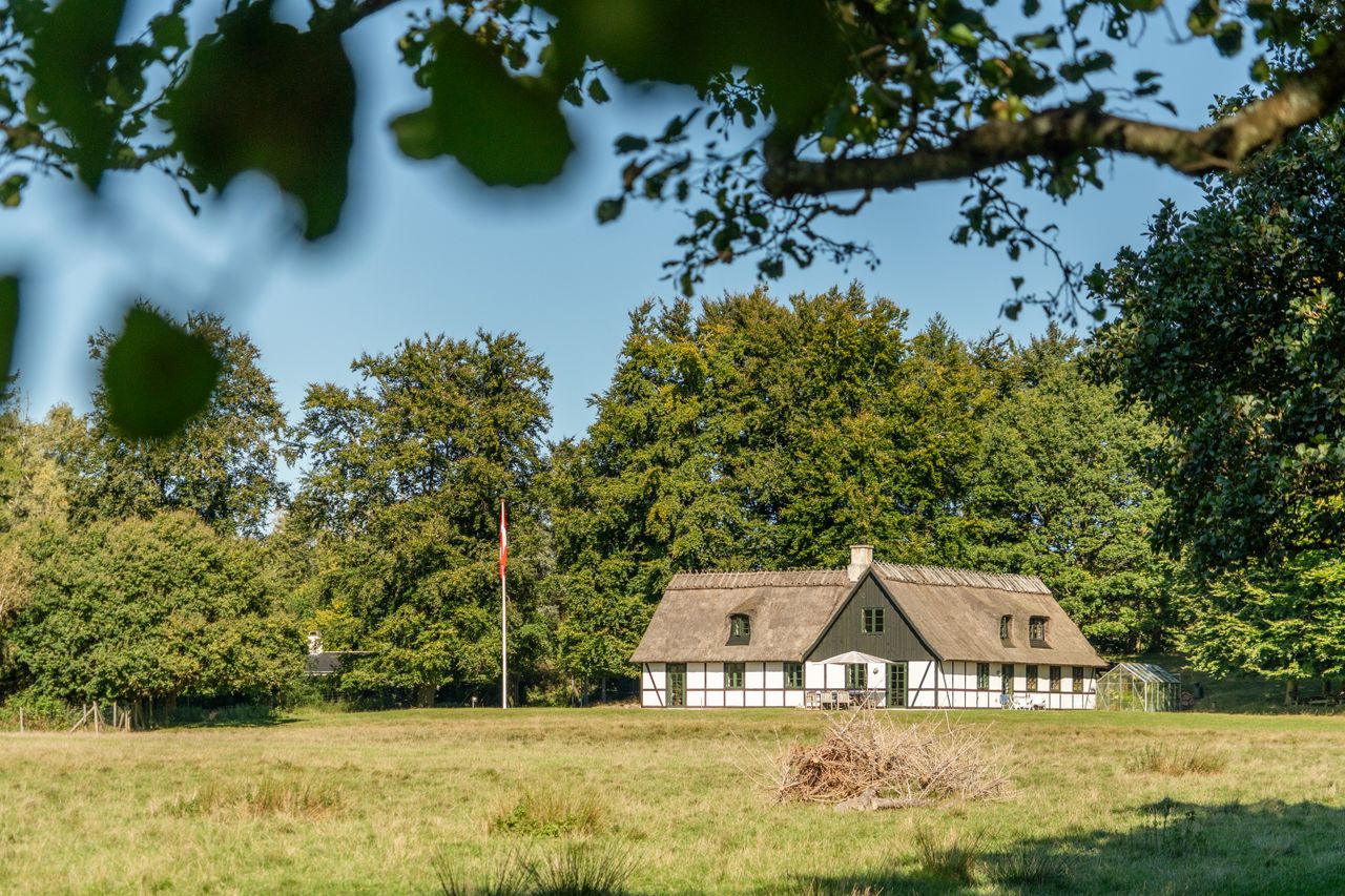 Straks man drejer ind på gårdspladsen glædes man over udsigten og den charmerende ejendom. En ejendom der er opført i 1989 efter gamle forskrifter med synligt bindingsværk og stråtag. I dag 200 m2 og indrettet med to køkkener, idet planløsningen er ideel til at kunne bo sammen flere generationer. Ydermere gode muligheder for at kunne bygge til eller opføre nyt. Man må som køber påregne udgifter til modernisering og energioptimering.