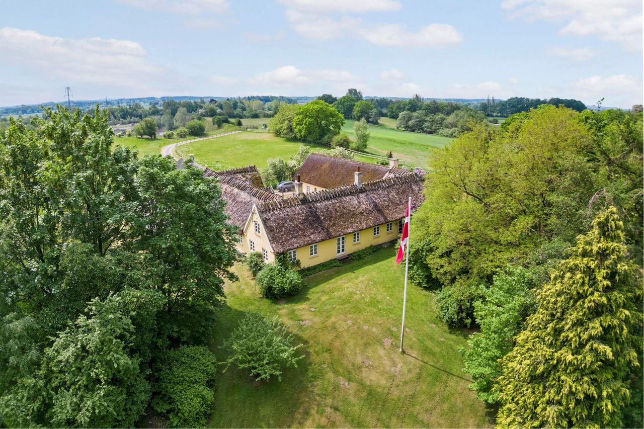 lukkede grusvej er denne stråtækte og charmerende ejendom beliggende.