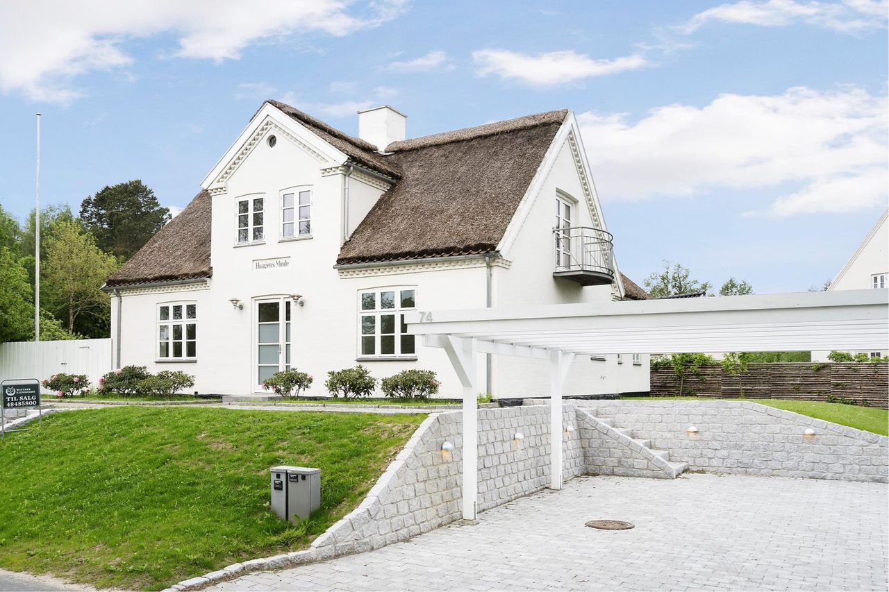 Stråtækt og moderniseret villa i det idylliske gamle Sørup ved havnen og Esrum Sø.